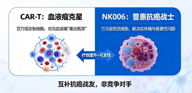 NK006 用 “三重抗癌机制” 解决了实体瘤的治疗痛点,用 “超低副作用” 打消了患者的顾虑,再加上现货供应(不用等)、成本可控、覆盖 8 类实体瘤的优势,正在让细胞治疗从 “天价奢侈品” 变成更多患者用得起、用得安全的治疗选择。